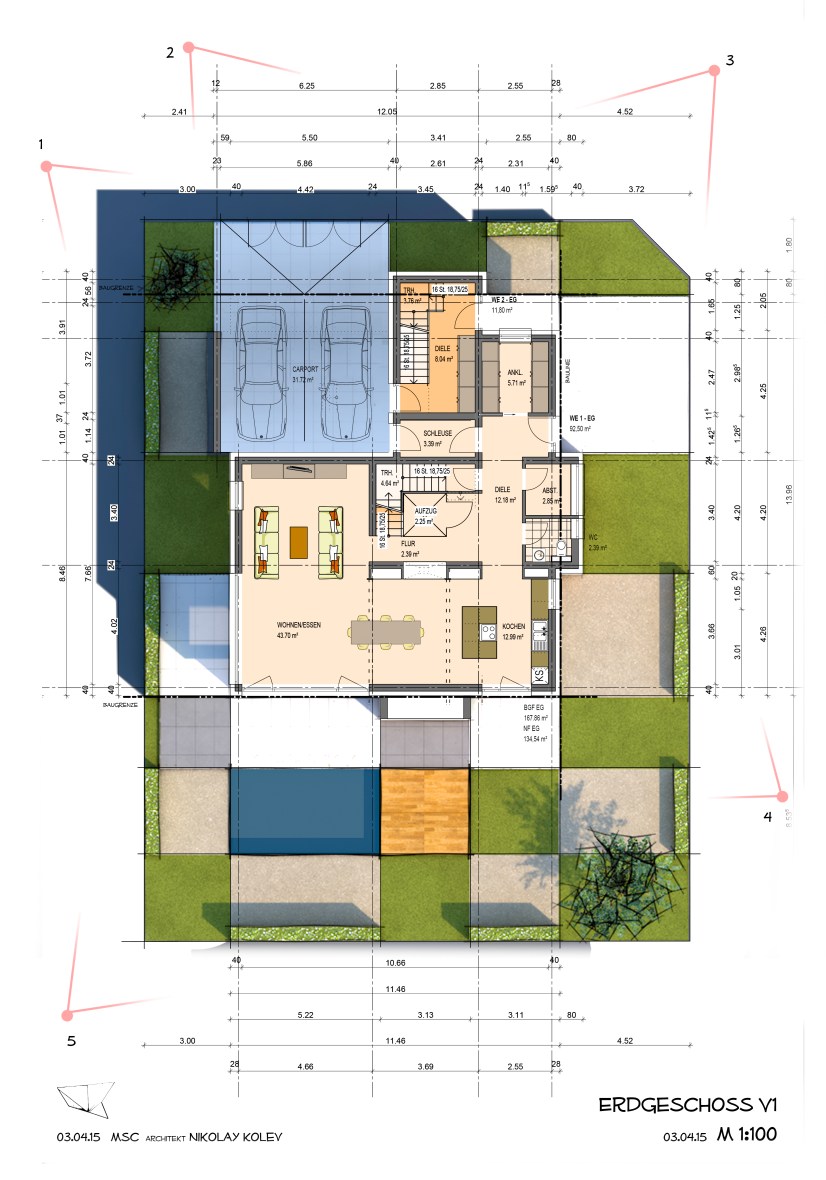 +++ Heist ZFH 150403 Grundriss EG 1 WEB April 4, 2015 • 6784 × 9692 • A Two-family House in Offenburg Ground floor layout V1
