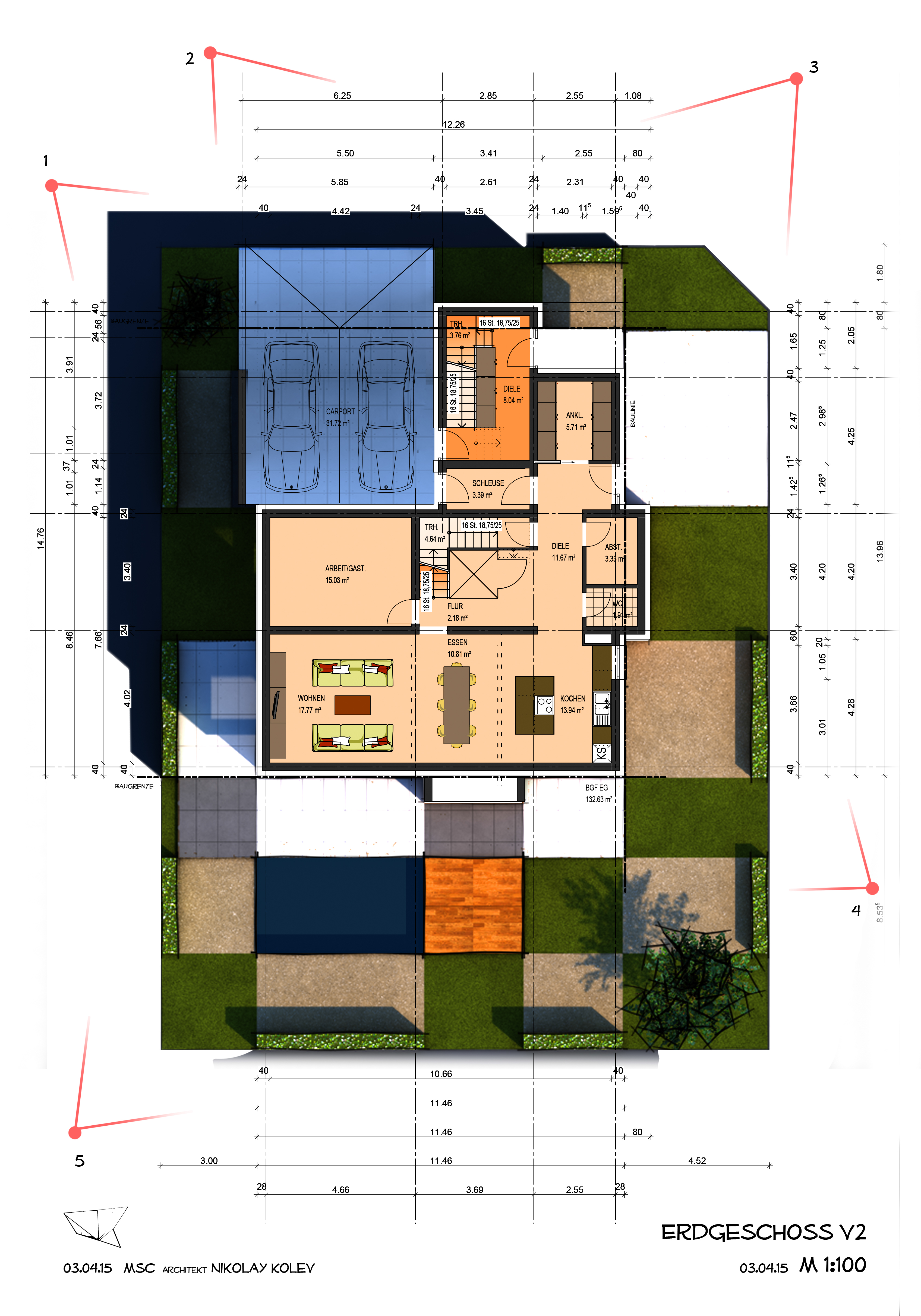 +++ Heist ZFH 150403 Grundriss EG 2 WEB April 4, 2015 • 3392 × 4846 • A Two-family House in Offenburg Ground floor layout V2
